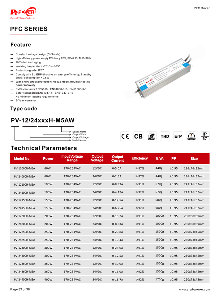Estándar EMC:EN55015, EN61000-3-2, EN61000-3-3