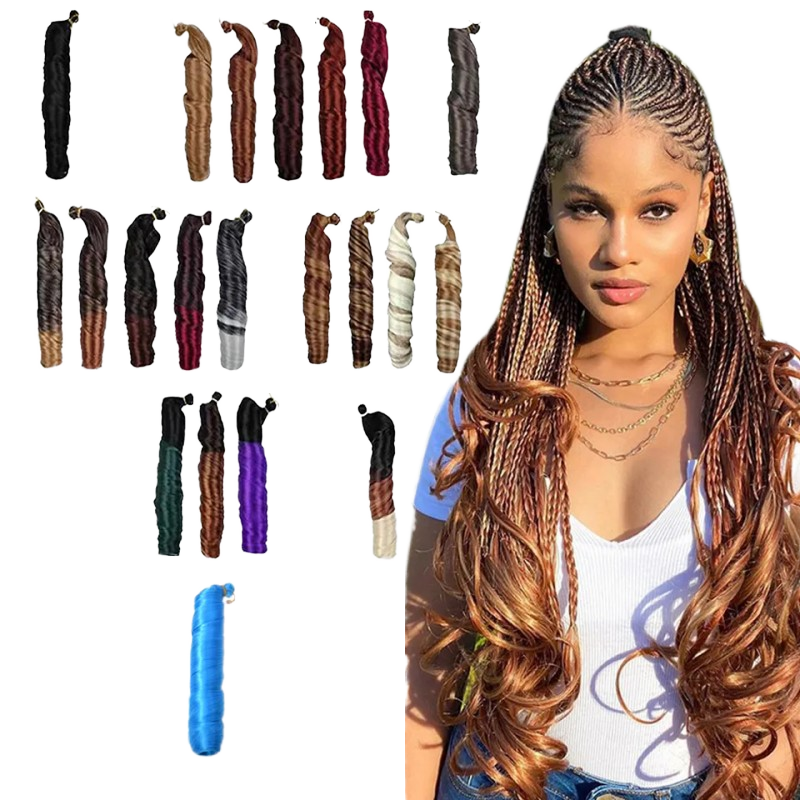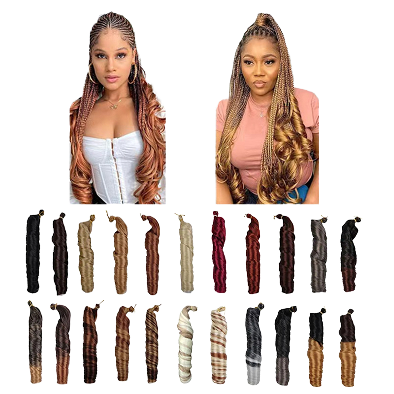 Exhibición de 150g cuerpo suelto onda Pony Estilo espiral rizo ganchillo trenza rizos franceses extensiones de cabello sintético cabello trenzado rizado