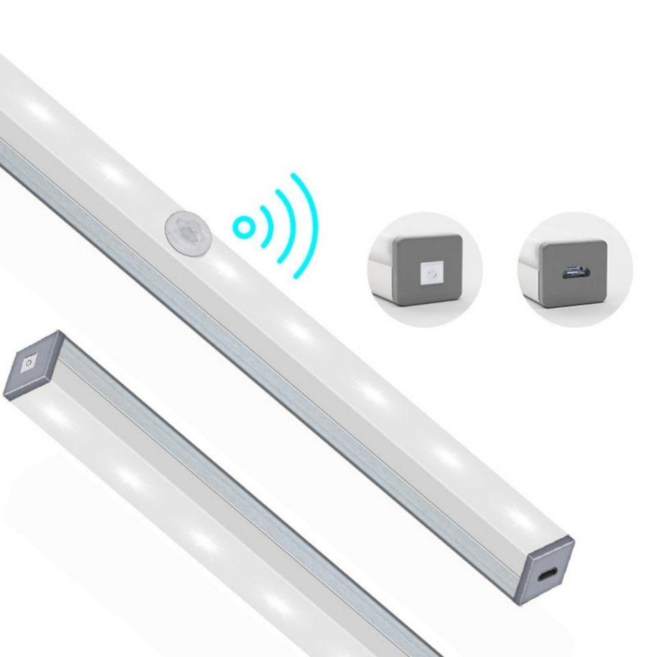 Barra de Luz con Sensor de Movimiento de 15CM y 10 LED, Portátil, Recargable por USB, para Cocina, Armario, Escaleras, Cama, Escritorio