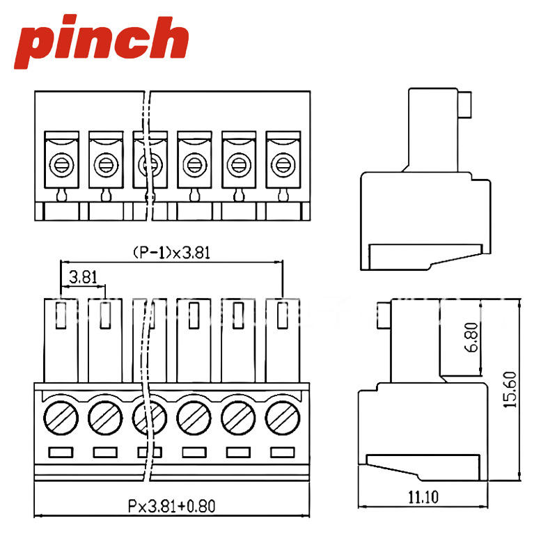 Bloque de terminales PCB 15EDGK, paso de 3,81 mm, tipo tornillo, 2-12P, conector sin soldadura de cobre puro para cableado electrónico