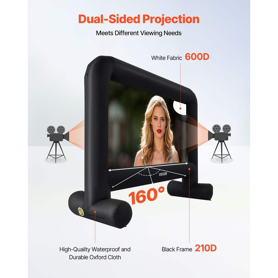 Pantalla de Cine Inflable Portátil de 15 Pies con Proyección Fácil de Instalar, Relación de Aspecto 16:9, Bolsa de Almacenamiento para Exteriores
