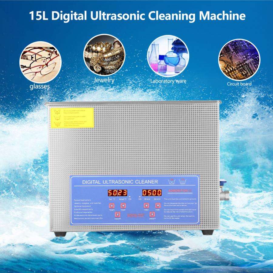 Limpiador Ultrasónico de Acero Inoxidable de 15L, Máquina de Limpieza por Ultrasonido para Joyería, Dentaduras Postizas, Piezas, Gafas