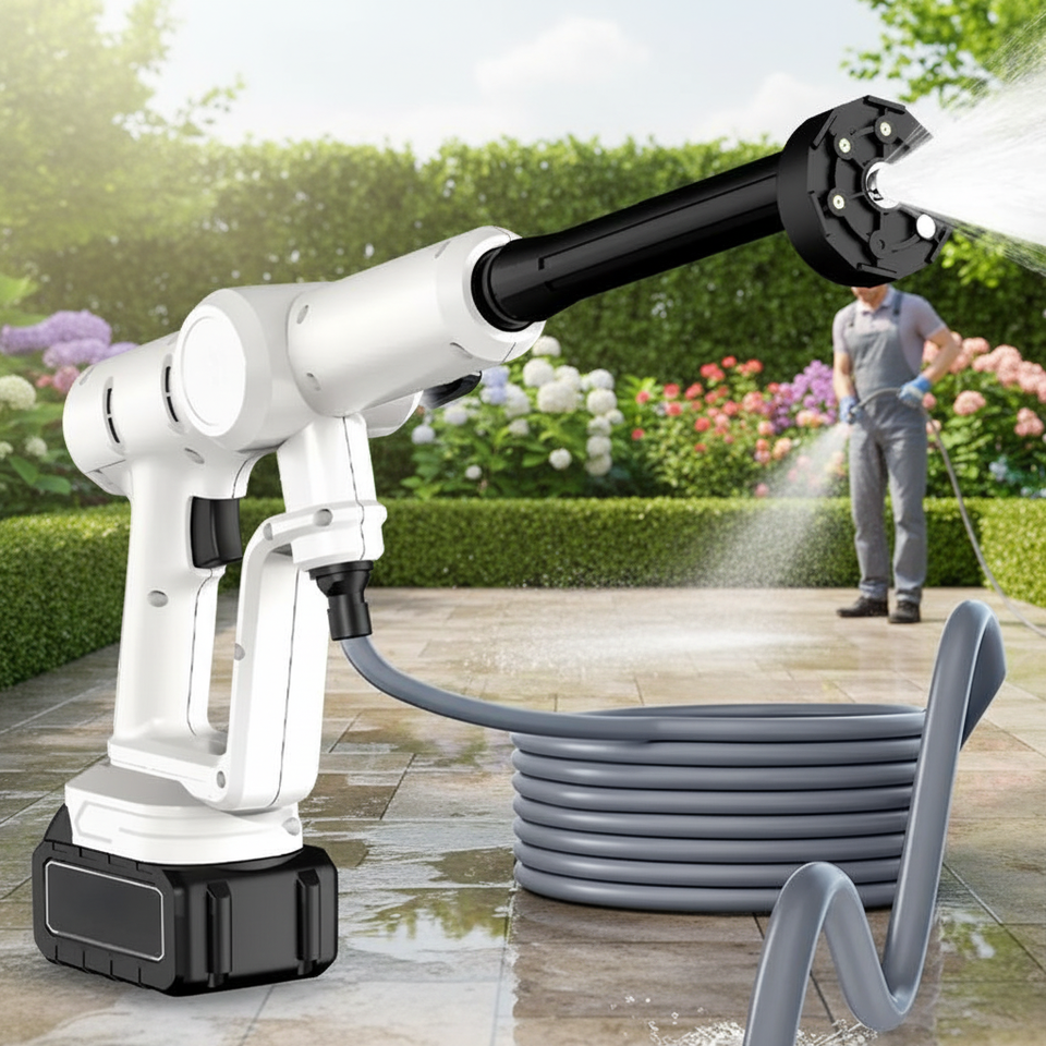 Hidrolavadora Inalámbrica con Alcance de Rociado de 15 Metros, Pistola de Limpieza de Alta Presión Portátil con Batería de Litio para Uso en Automóviles, Jardines y Hogares