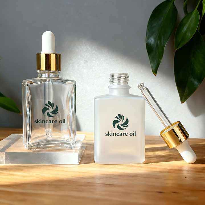 Botella de Vidrio Transparente Esmerilada Cuadrada de 15 ml, 30 ml, 50 ml, 100 ml con Gotero para Suero para el Cuidado de la Piel, Rectangular para Aceite Esencial