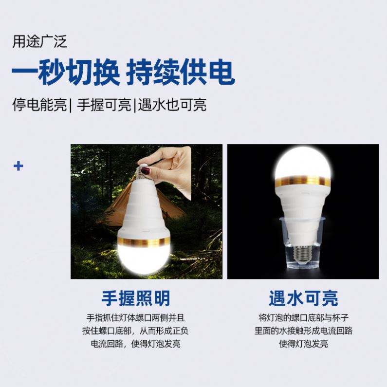 Bombilla LED de Emergencia Recargable de 15W con Luz Blanca Fría, Diseño con Gancho IP65