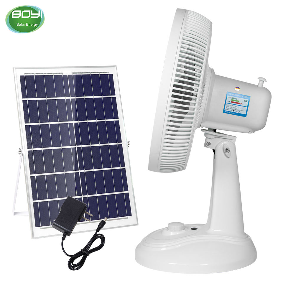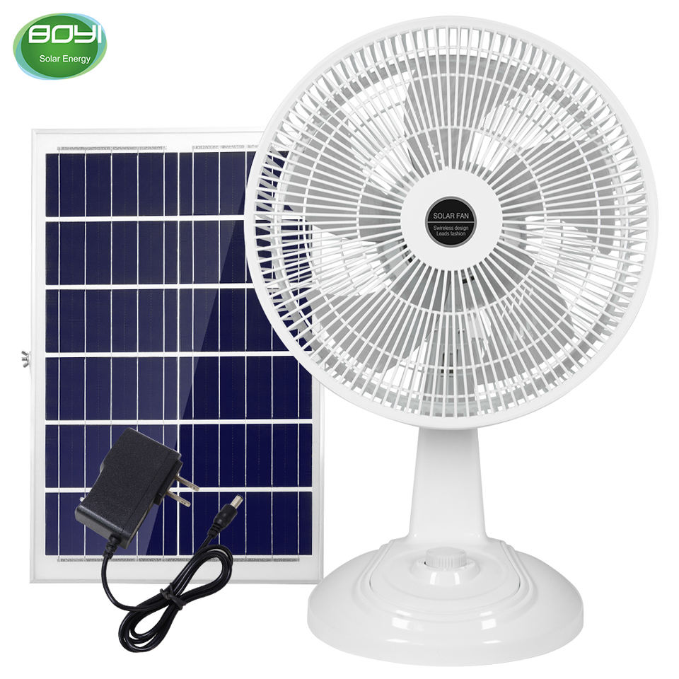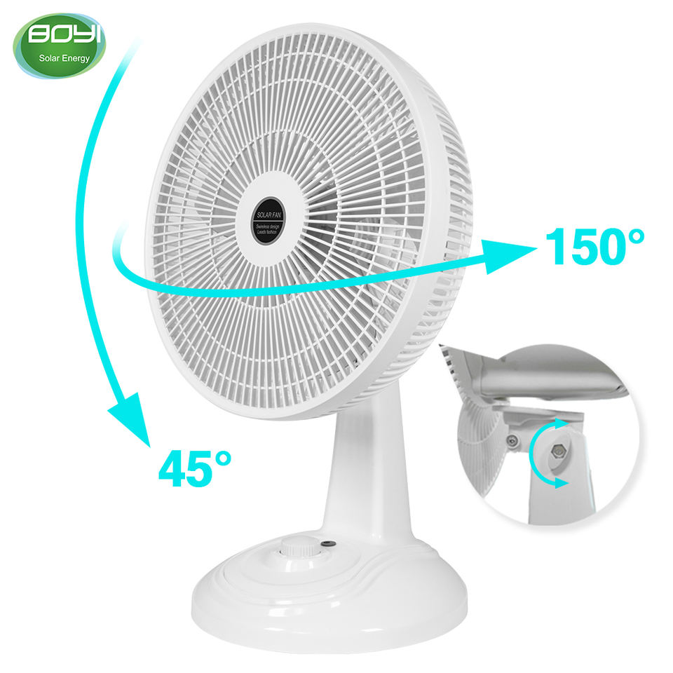 Ventilador de mesa solar de 15W Ventilador blanco de 3 velocidades con carga de CA CC para dormitorio Baño Hotel al aire libre Ventilador solar portátil de 15W