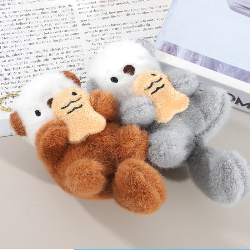 LLavero de Peluche de Gato con Pez, Muñeco de Felpa Suave de 15cm, Colgante, Lindo Gato de Peluche Personalizado, Llavero de Felpa