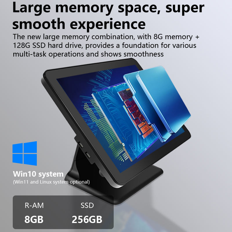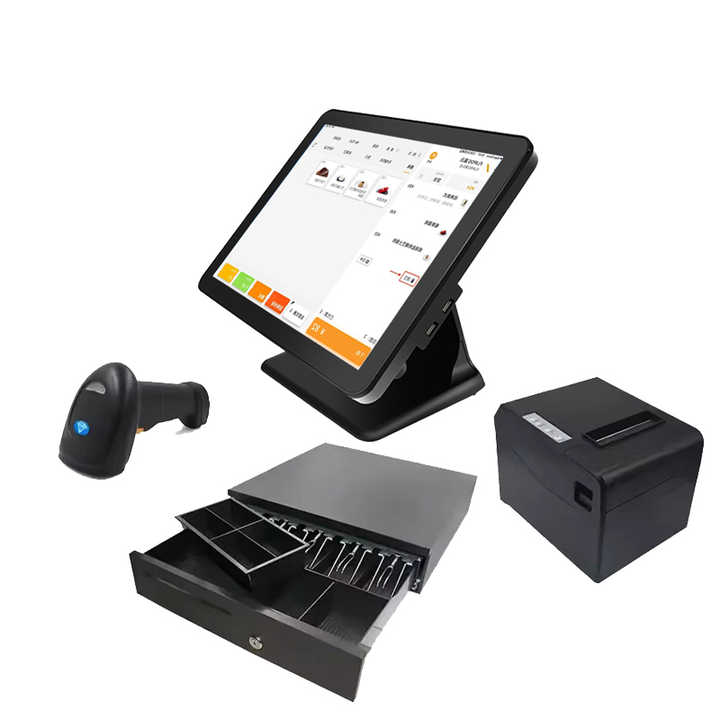 Terminal de caja registradora POS con pantalla táctil única de 15 pulgadas con NFC e impresora térmica Android/Windows OS para restaurantes y venta al por menor