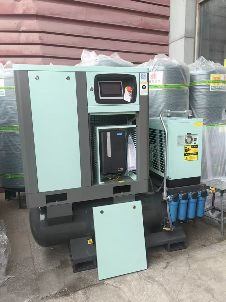 Compresor de Aire de Tornillo Integrado Silencioso de 15kW, Sin Aceite, Refrigerado por Aire, con Secador, Tanque de 300L, Bajo Ruido, con Rodamientos y Motor