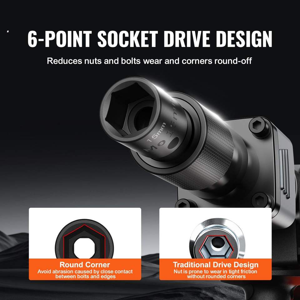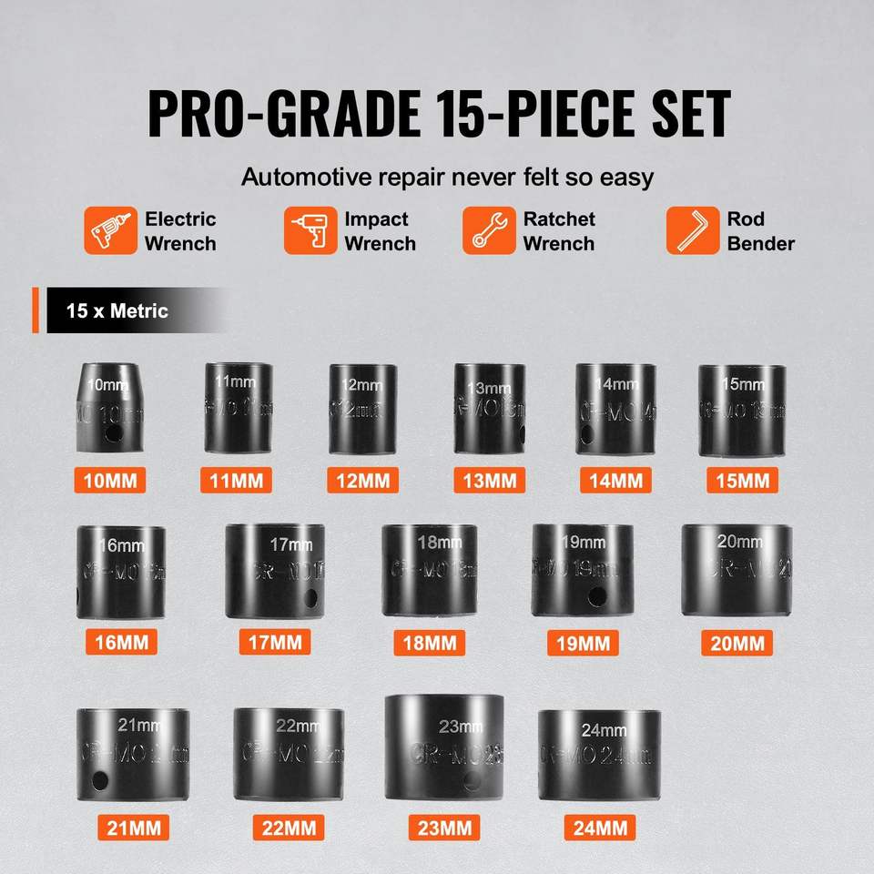 Kit de herramientas de trinquete de broca de 6 puntos de 3/8 pulgadas, juego de enchufes de impacto, práctico estuche de almacenamiento para herramientas, 15 Uds.