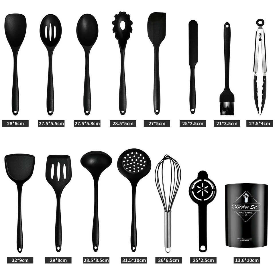 Juego de 15 Utensilios de Cocina de Silicona Antiadherentes Resistentes al Calor con Soporte