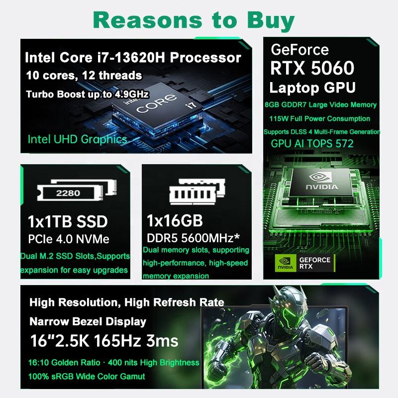 Pantalla:16,1 pulgadas 2K 2560*1600 16:10 165HZ