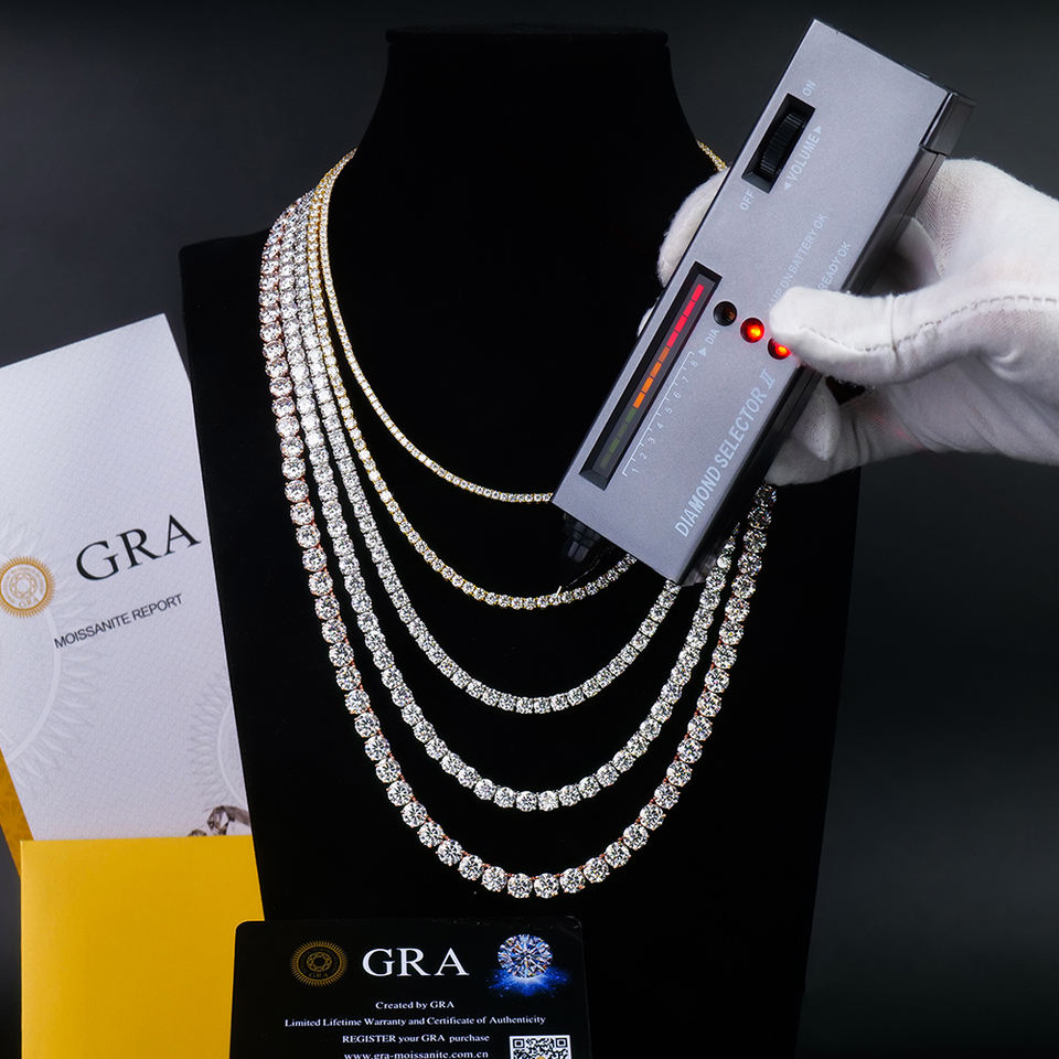 Collar de Moissanita Redonda de Corte Brillante de 16/18/20/22/24 Pulgadas para Hombre y Mujer, Cadena de Tenis Estilo Hiphop, Plata 925, Oro Rosa, Oro Amarillo