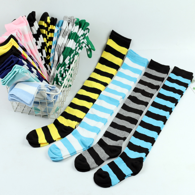 16 colores Primavera Verano niñas estudiante rayas muslo medias hasta la rodilla calcetines largos para uniforme escolar de Anime