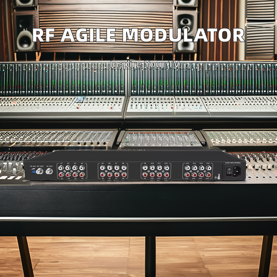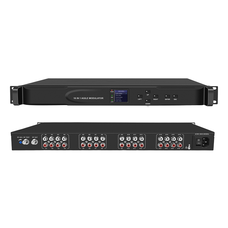 Modulador analógico 16 en 1 para uso hotelero que convierte 16 señales de vídeo y audio a RF (modulador ágil)