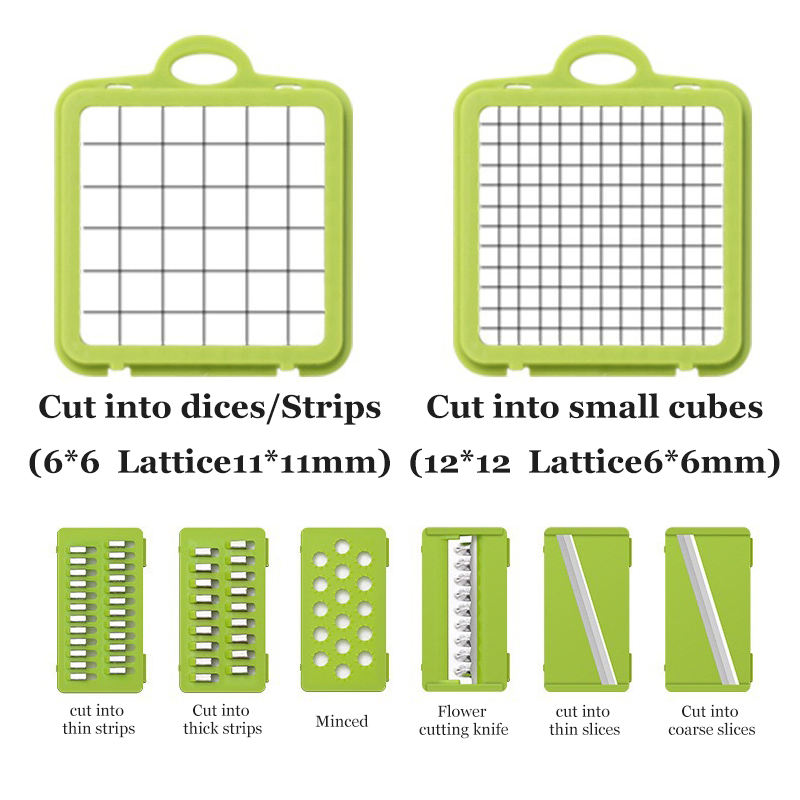 Cortador de cocina multifuncional 16 en 1, construcción de plástico de calidad alimentaria, fácil de limpiar, diseño portátil, accesorios de cocina