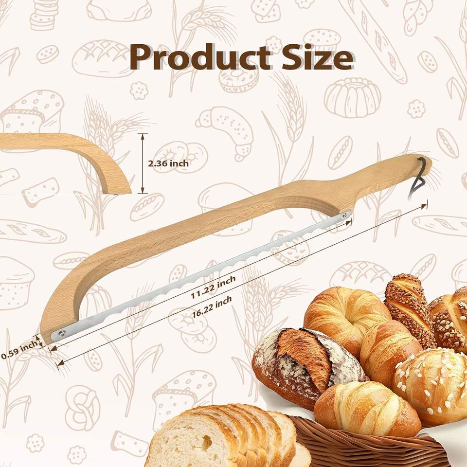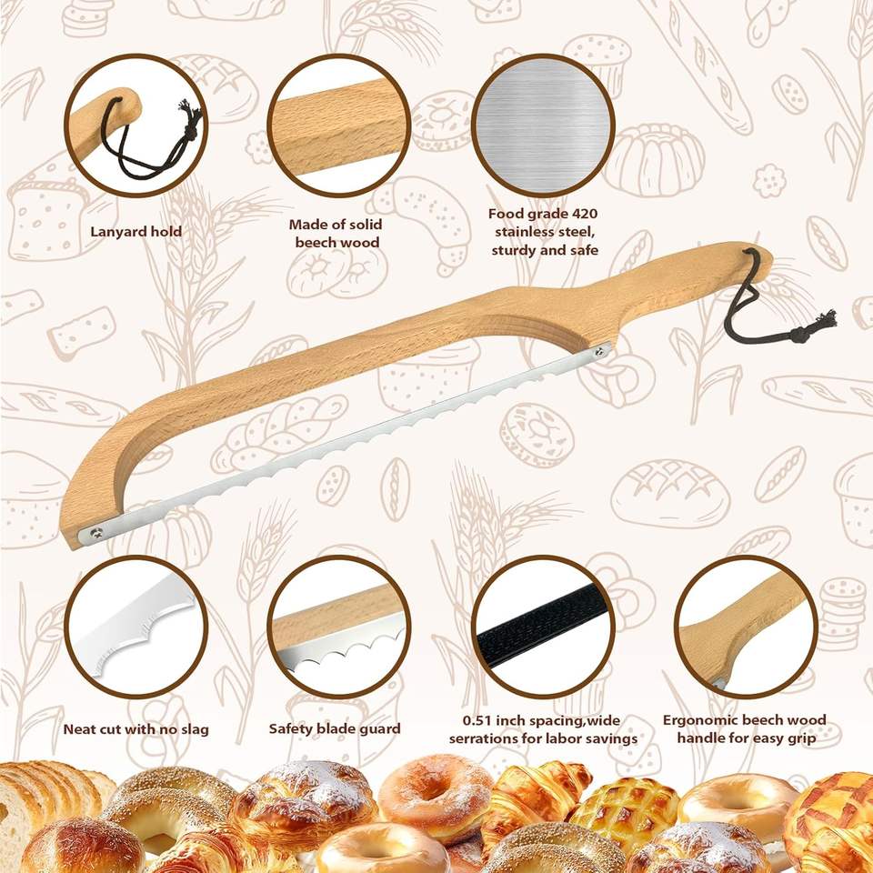 Cuchillo de lazo de pan casero de 16 pulgadas para levadura redondo con cubierta protectora cuchillo de pan dentado de acero inoxidable
