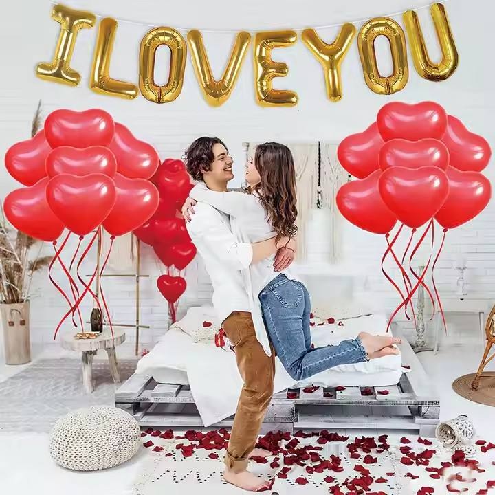 Globos de película de aluminio con letras I Love You de 16 pulgadas, arreglo de decoración de habitación de boda DIY, globo con forma de corazón de confesión de Tanabata