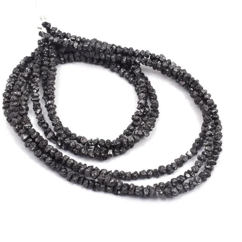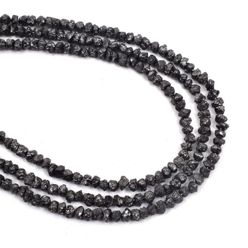 Cuentas de Diamante Negro Lustre LD Sin Cortar, AAA+, Piedras en Bruto, Pulsera Hecha a Mano, Regalo para Ella, 16 Pulgadas de Largo, 100% Natural, Tercera Calidad