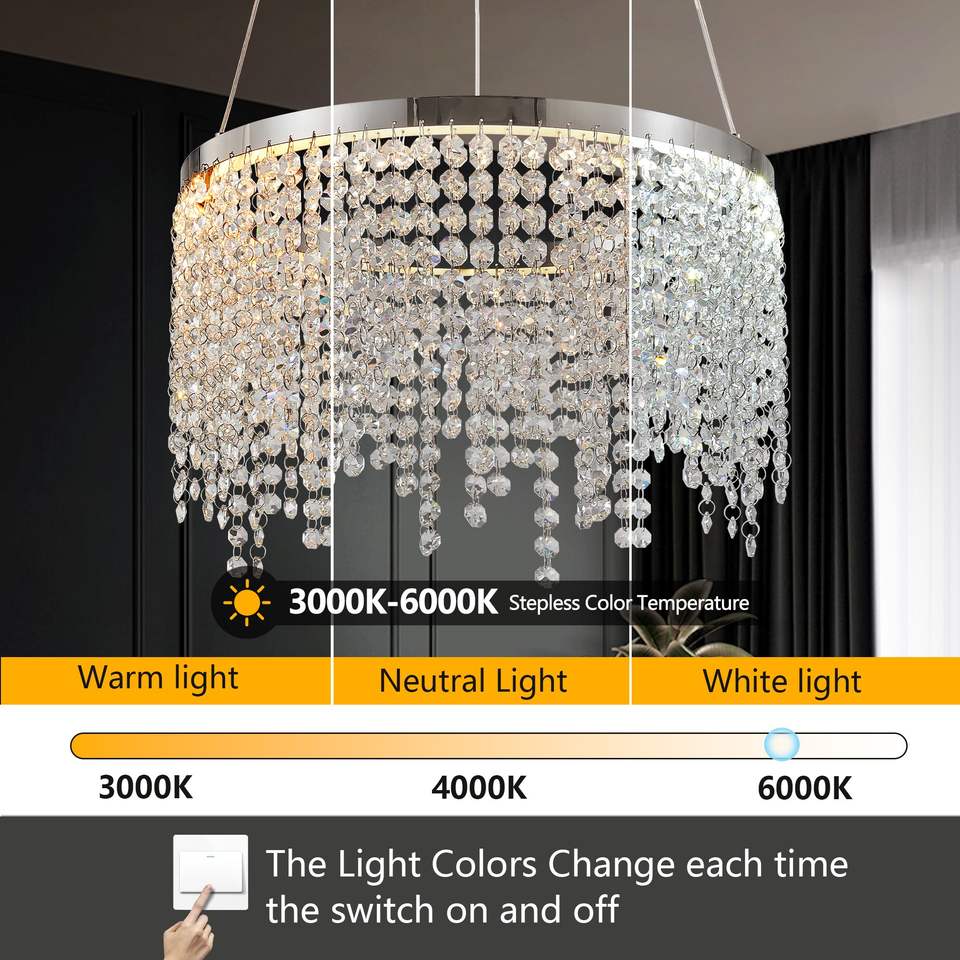 Lámpara de Araña LED de Cristal de Lujo de 16 Pulgadas para Sala de Estar Moderna, Altura Ajustable, con Temperatura de Color de 3000K a 6000K