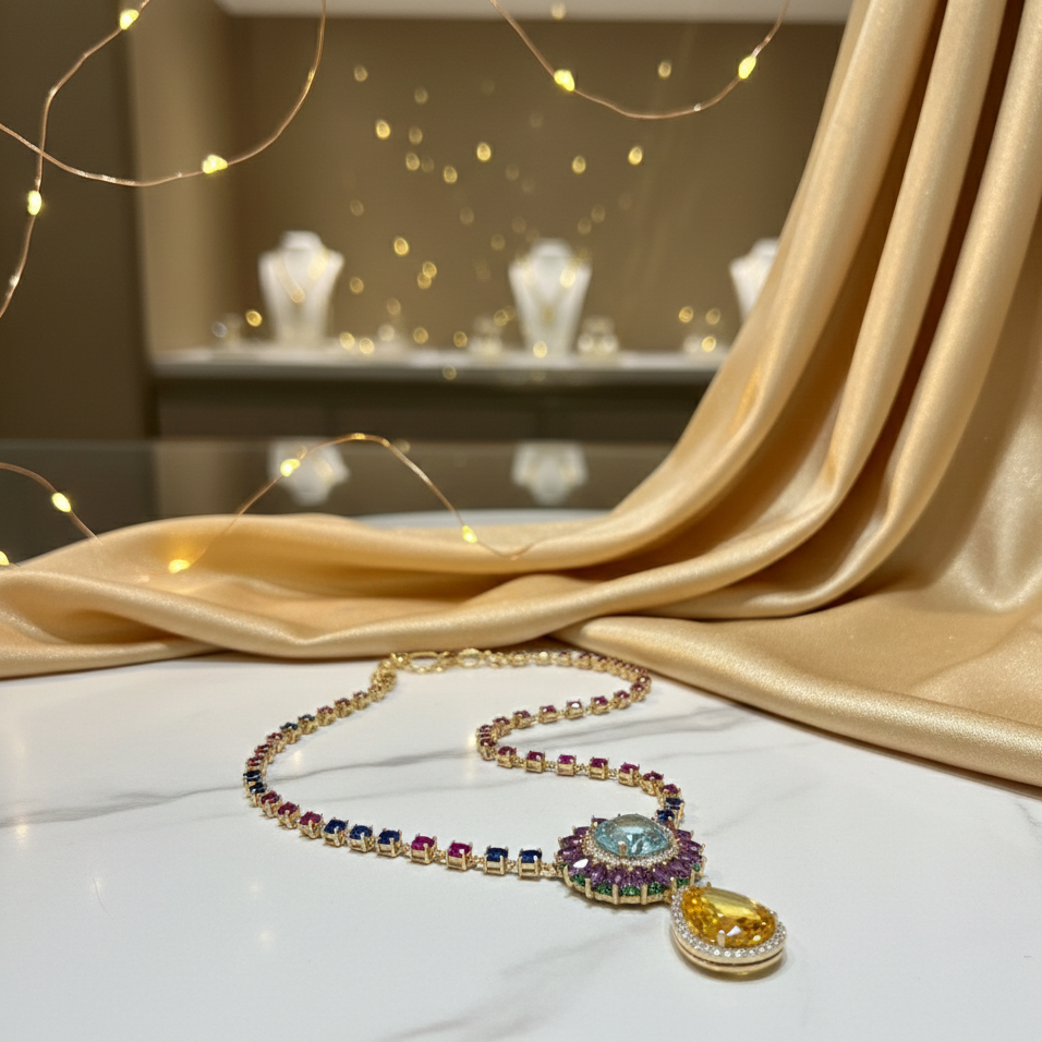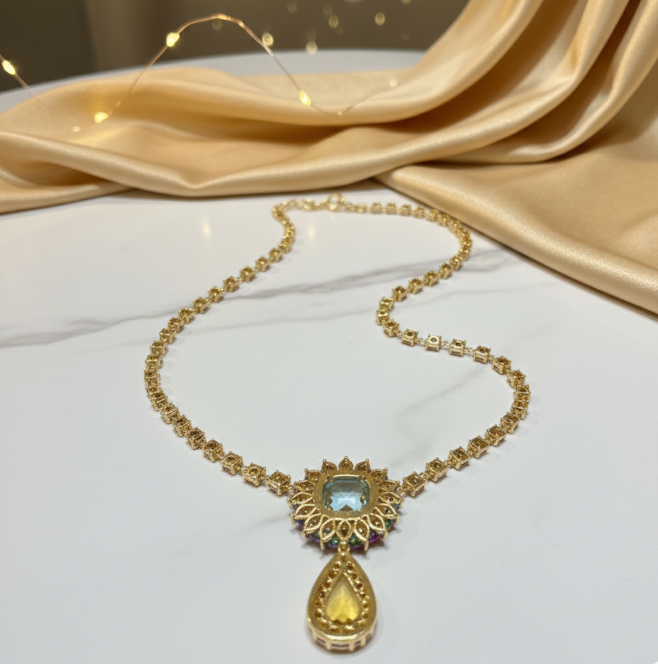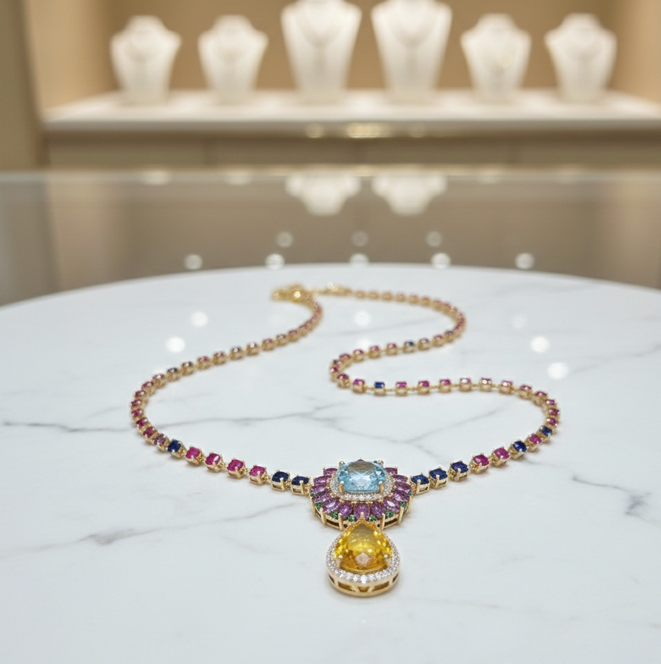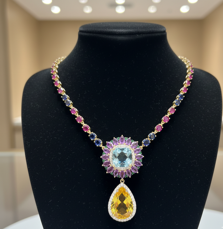 Collar de Piedras Multicolores de 16 Pulgadas, Plata de Ley 925, Chapado en Oro de 18K, Collar con Colgante de Gemas de Varios Tamaños, Joyería para Bodas