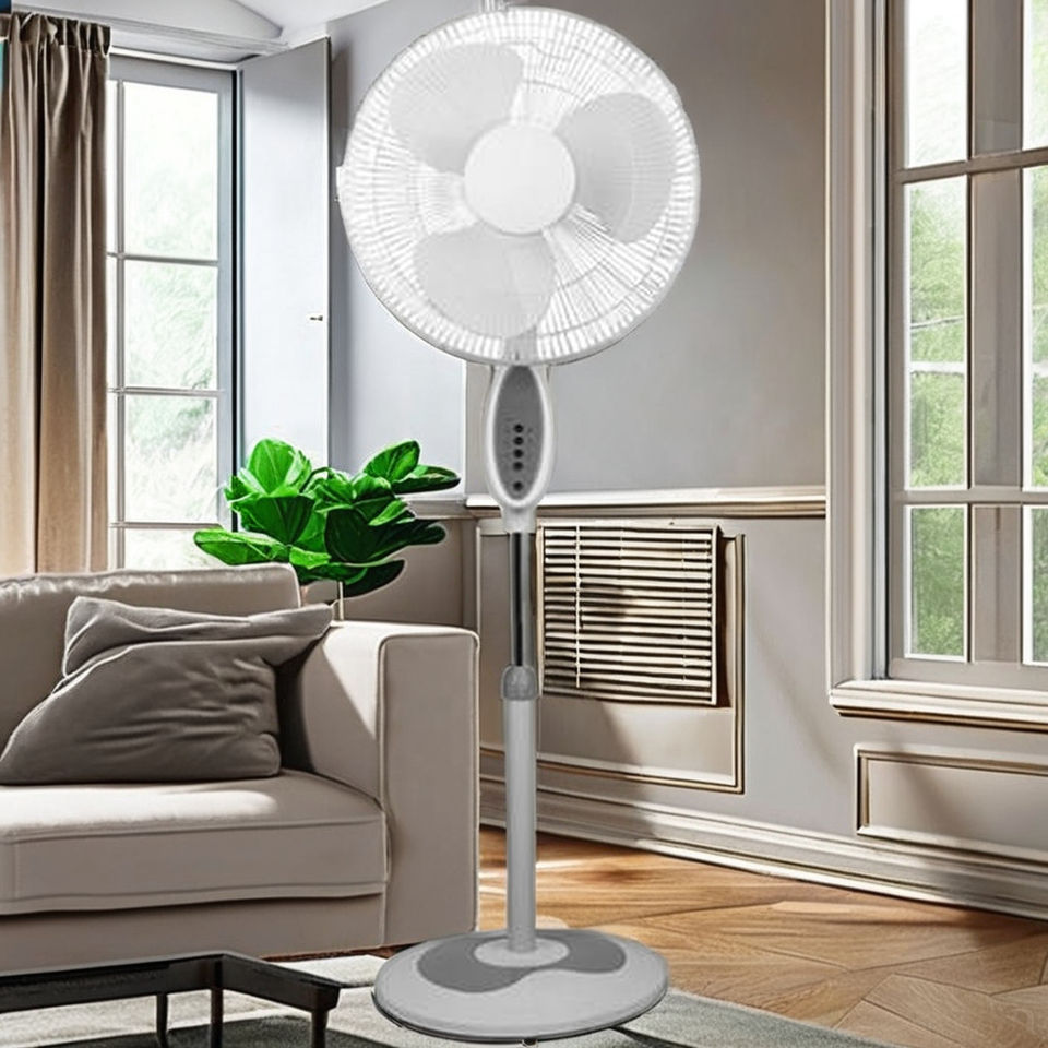 Ventilador de soporte inteligente de 16 pulgadas con motor de cobre de 18mm, 3 velocidades, cuchillas de PP de 400mm, parrilla de alambre oscilante, enchufe BS aprobado por CE, hogar ST 5