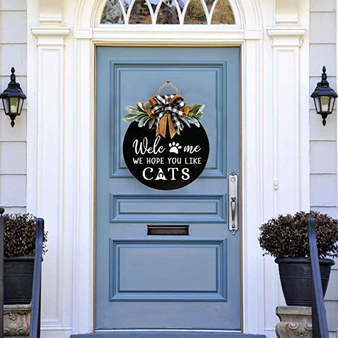 Letrero de Bienvenida de 16 Pulgadas para Puerta Principal, Guirnalda Colgante con la Frase 'Welcome Me', 'We Hope You Like Dogs', Decoración Rústica para Puerta de Casa, para Interiores y Exteriores