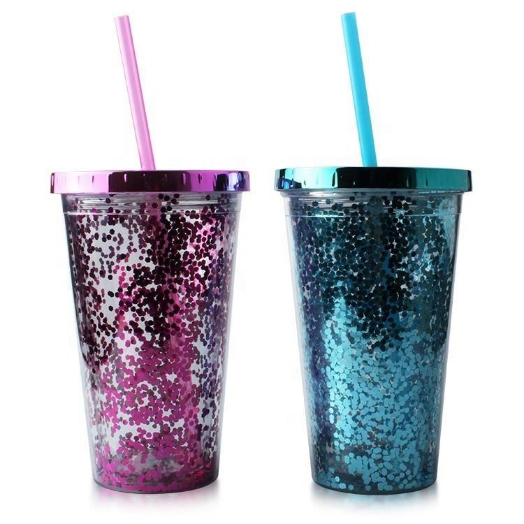 Nombre del Producto:Vaso de plástico de doble pared con brillo de 16 oz, libre de BPA