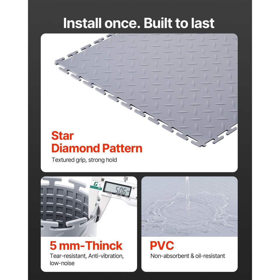 Paquete de 16 Baldosas Modulares Encajables para Piso de Garaje, 20.2 x 20.2 x 0.2, Diseño de Diamante, Antideslizantes, de Plástico, para Garajes