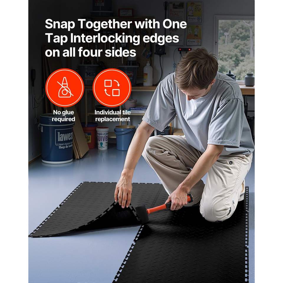 Paquete de 16 Baldosas Modulares Encajables para Piso de Garaje, 20.2 x 20.2 x 0.2, Diseño de Diamante, Antideslizantes, de Plástico, para Garajes