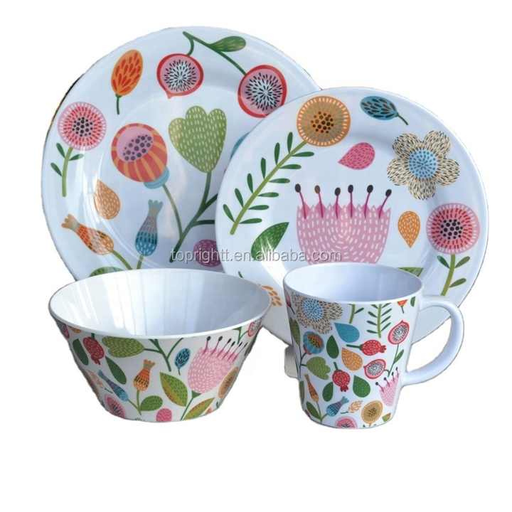 Juego de vajilla de melamina con diseño popular, 16 piezas