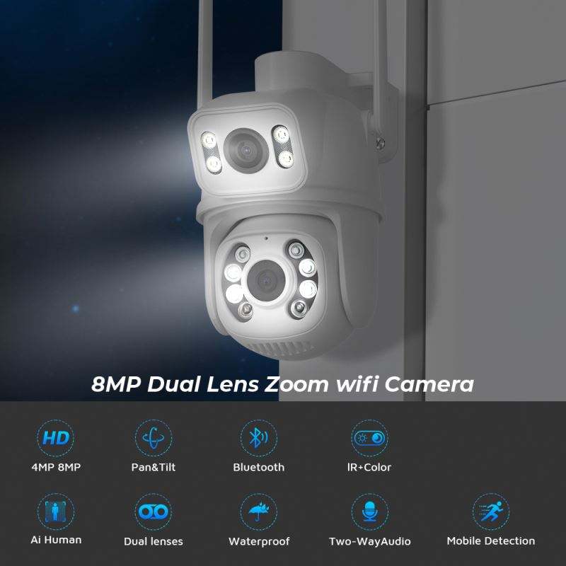 Humanos de seguimiento de movimiento, Visión nocturna, Detección de movimiento, Impermeable / a prueba de mal tiempo, PAN-TILT, De Audio de dos víasCaracterísticas especiales