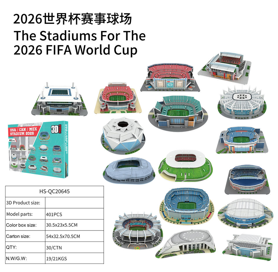 Set de 16 Modelos de Estadios, Incluye Réplicas Icónicas de MetLife, Estadio Azteca, SoFi y Más de Estados Unidos, Canadá y México 2026