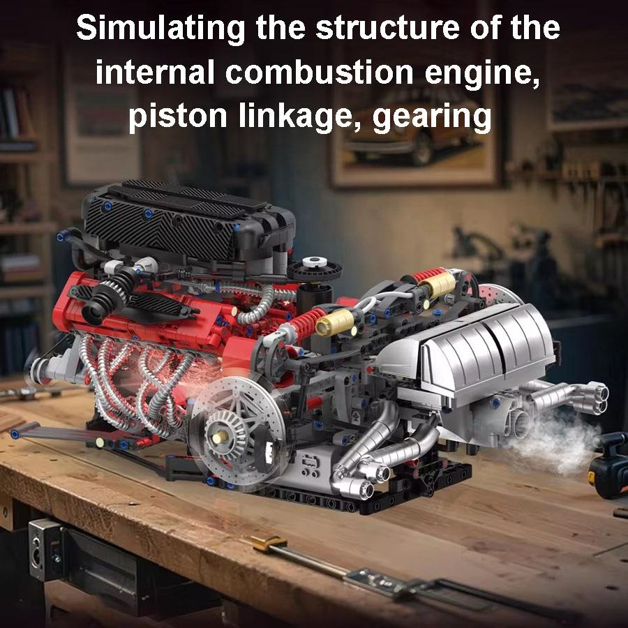Punto fuerte: Kit de construcción de bloques de motor.:Diseño de culata transparente, mecanismo de válvula único