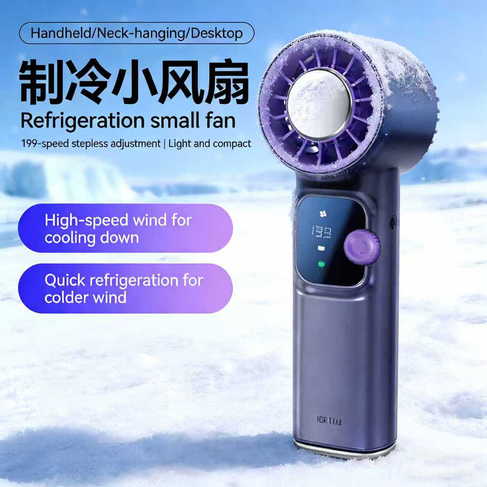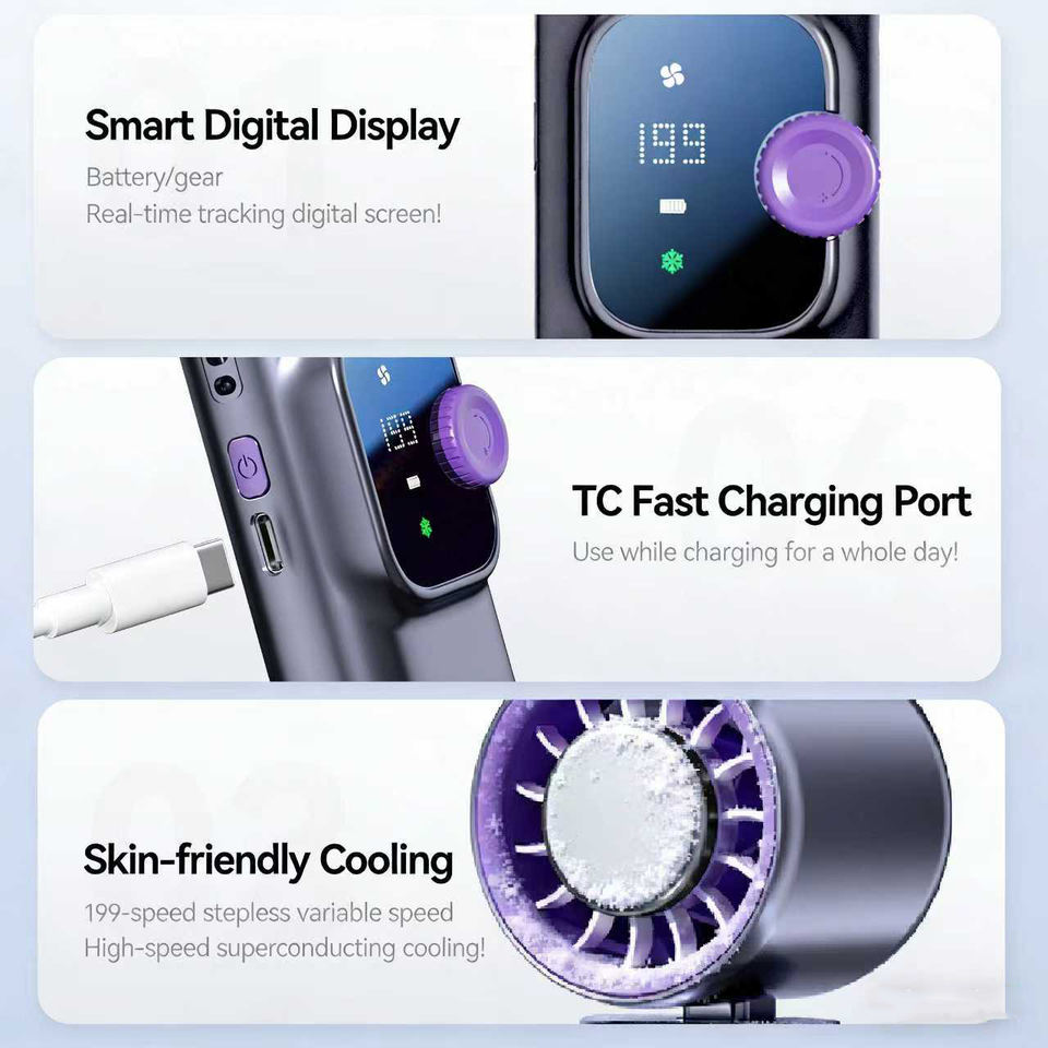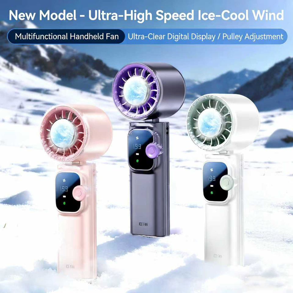Ventilador de Mano Plegable 166 con Pantalla Digital, Ventilador Pequeño Portátil para Exteriores, Ventilador de Cuello Colgante de Alta Velocidad, Mini Ventilador de Turbina