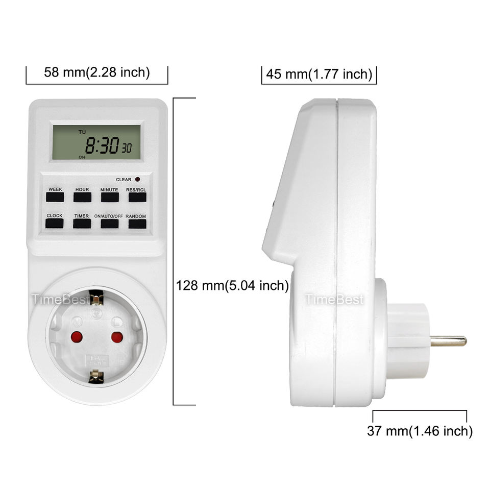 Enchufe Temporizador Programable de 16A 230V con Enchufe para Uso Residencial/General