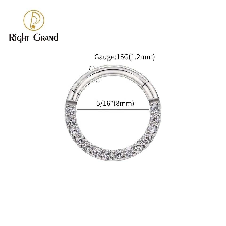 Anillo de titanio con bisagras, 16G, ASTM F136, CNC, CZ, con Clicker, Piercing de aro