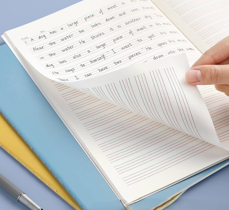 Libro de práctica de escritura de posicionamiento de tres rejillas de cuatro líneas gruesas grandes de 16K, cuaderno de tareas en inglés, papel de palabra, Impresión de cartón