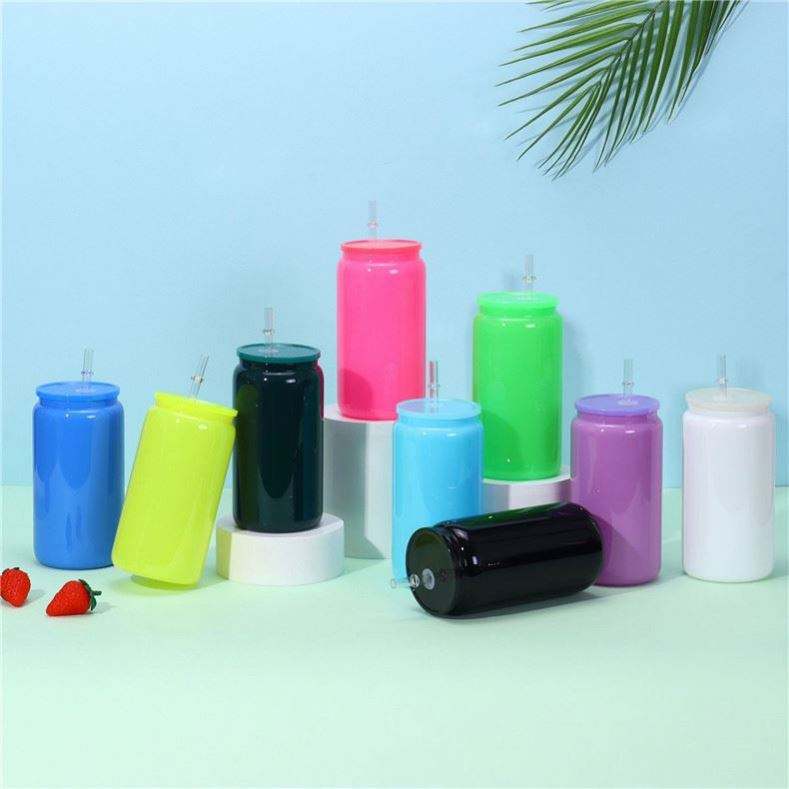 Vasos de plástico de macarrón sin BPA de 16Oz, lata de plástico para beber de color de 16Oz, vaso en forma de lata acrílica de colores con tapas de PP de colores