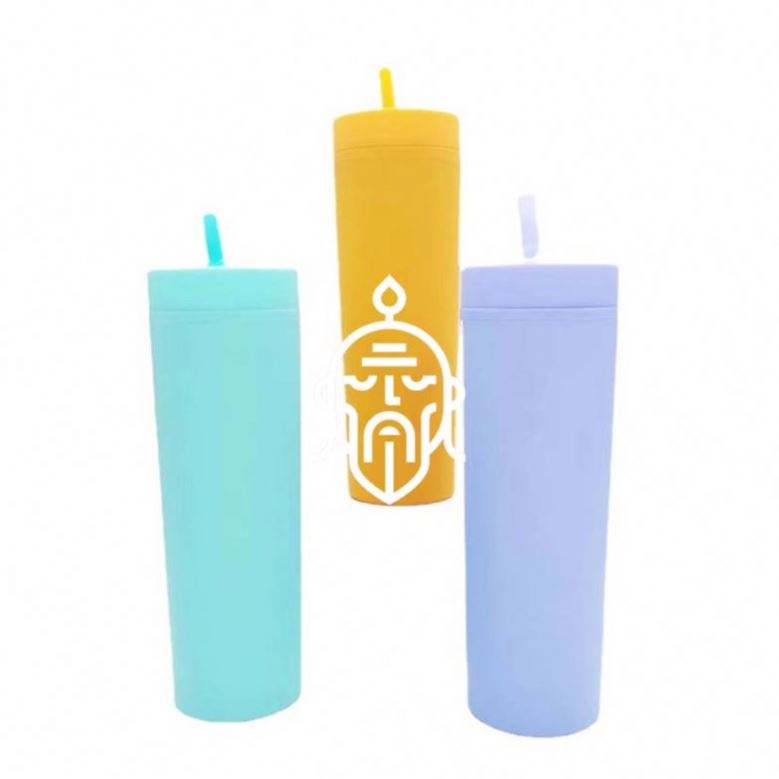 Vaso de acrílico transparente de doble pared de 16Oz, vasos de plástico reutilizables con pajita, vaso de plástico reutilizable con tapa