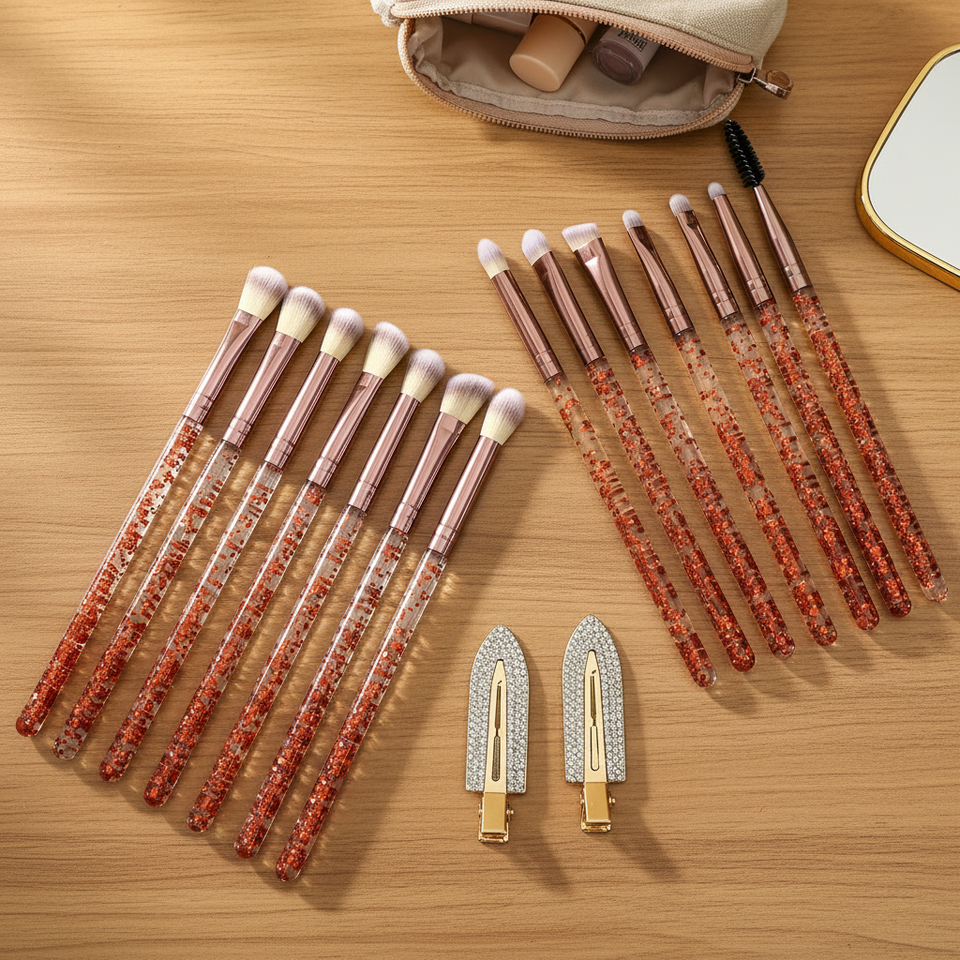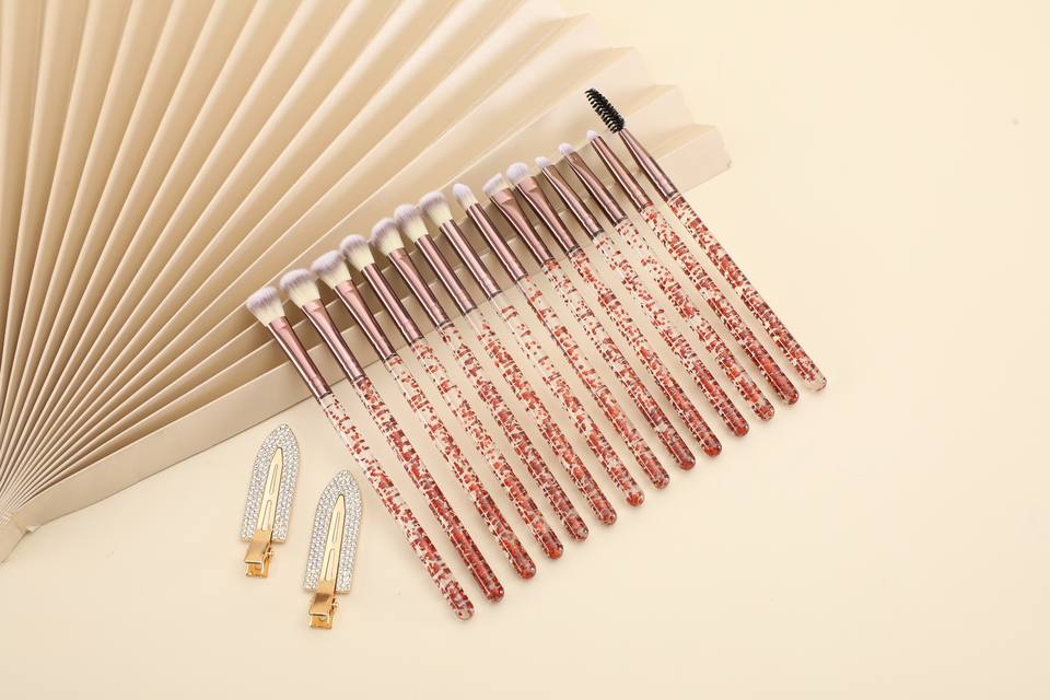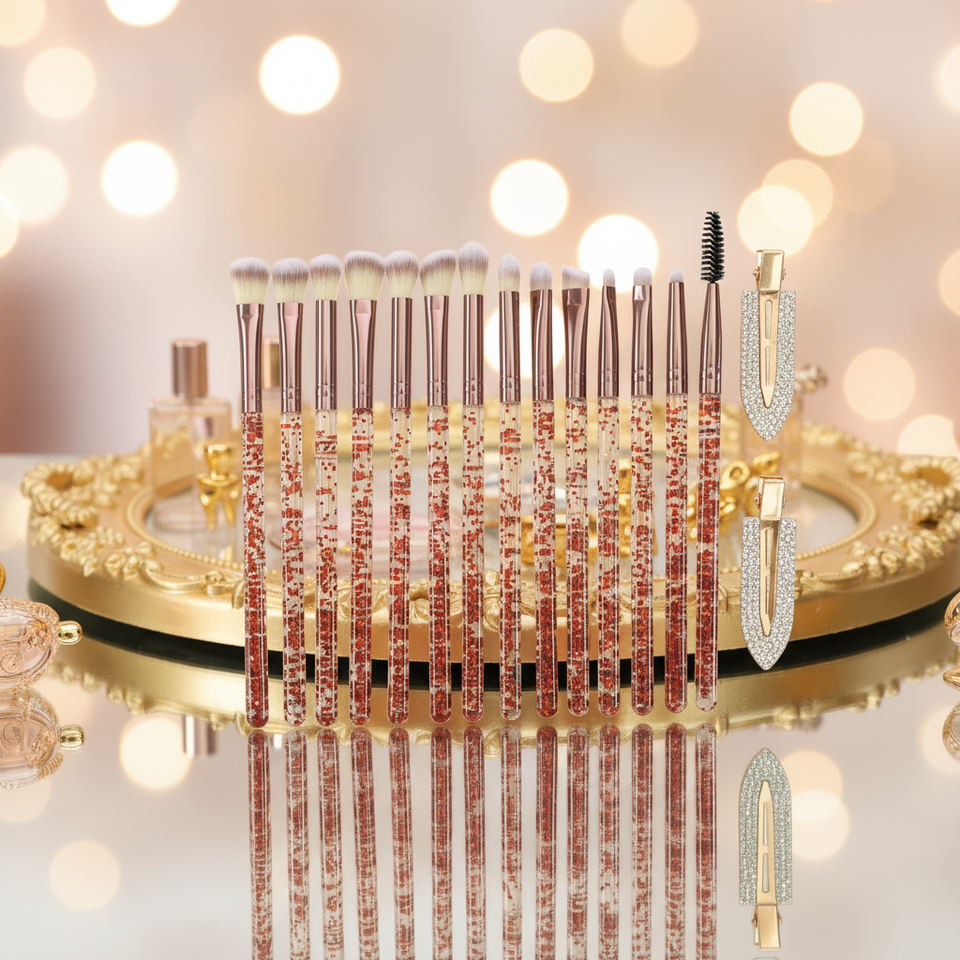 Juego de 16 Brochas de Maquillaje con Pedrería Glitz and Glam, Estilo Profesional, Brochas de Maquillaje de Lujo al por Mayor con Caja de Regalo