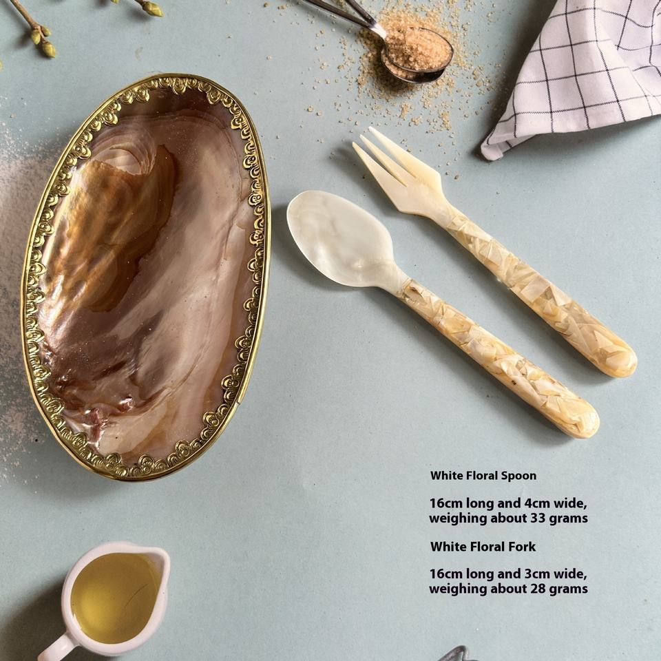 16cm Mango floral Postre Snack Tenedor Cuchara de concha de almeja de perla de alta calidad Vajilla fina desechable
