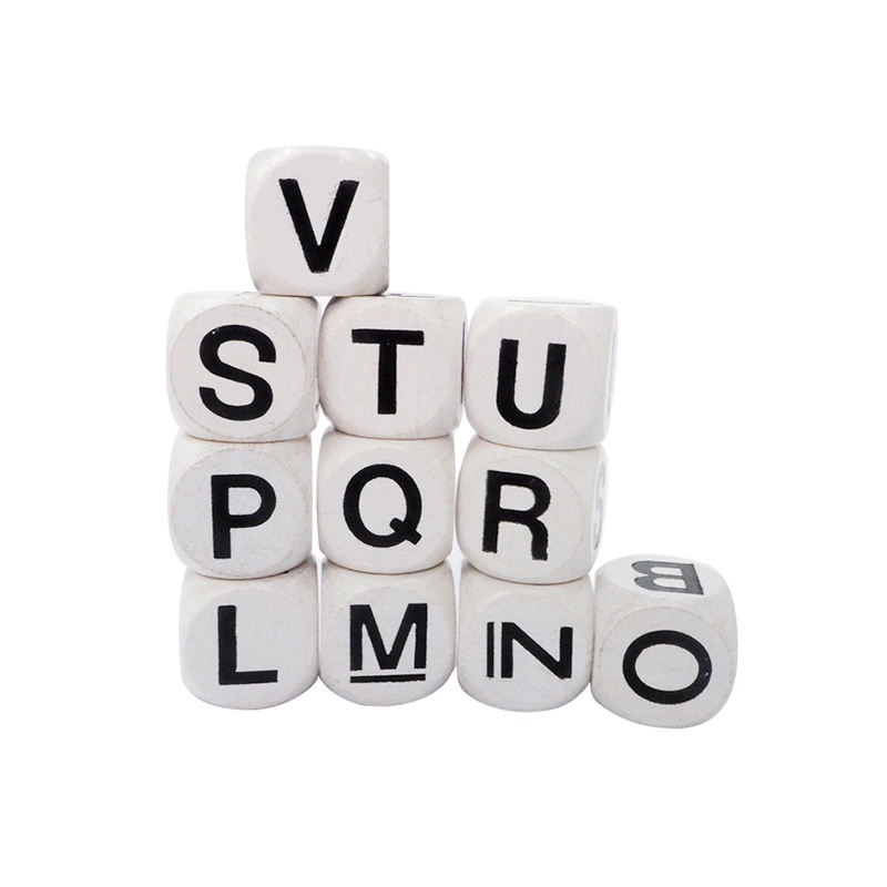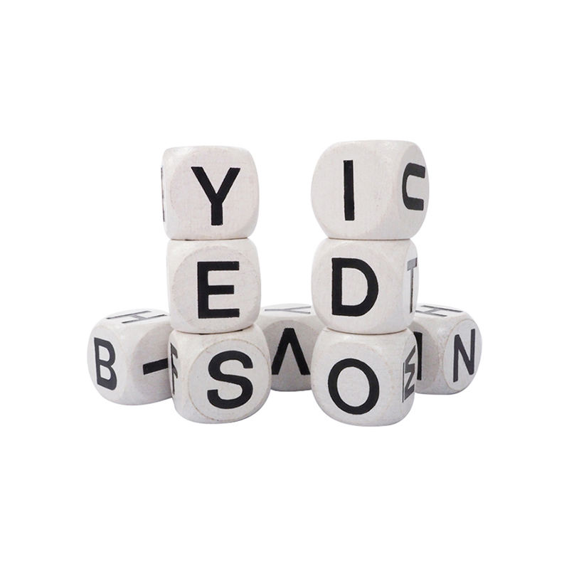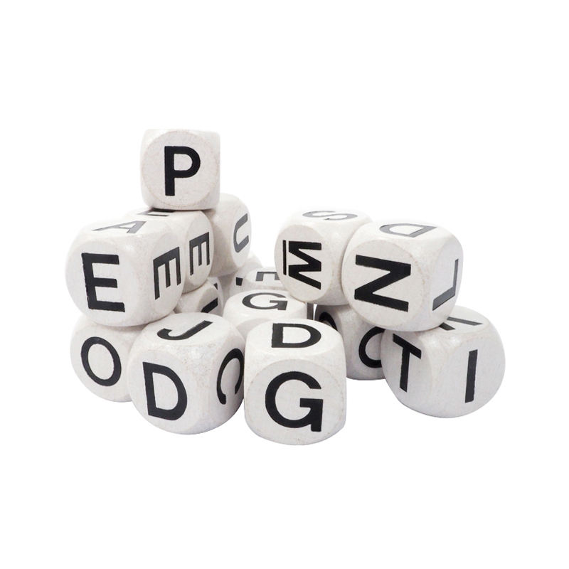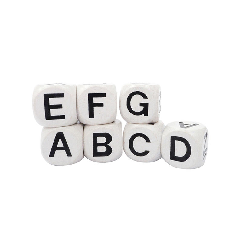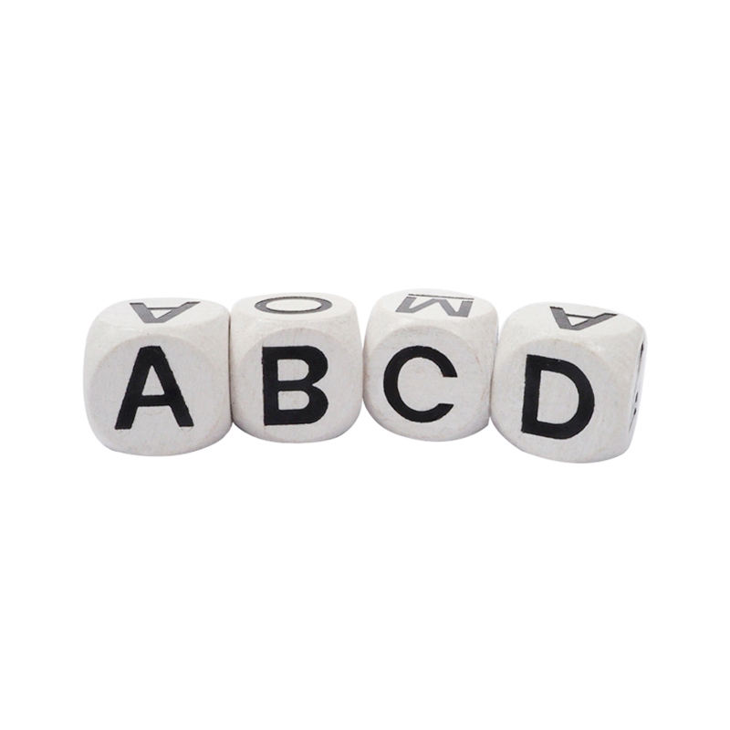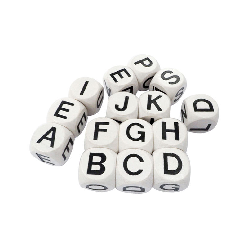 Nombre del elemento:16mm color blanco con negro inglés mayúscula dados de madera