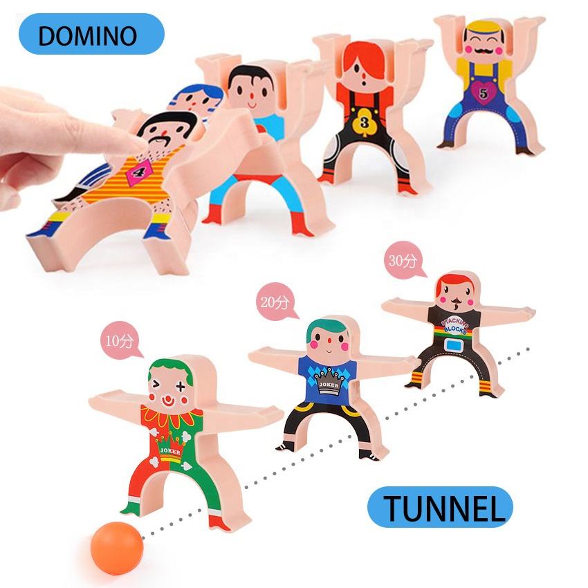 Juego de bloques de construcción de equilibrio para niños, conjunto de bloques de construcción de equilibrio de juego de dominó clásico con diseño de explorador acrobático, 16 piezas