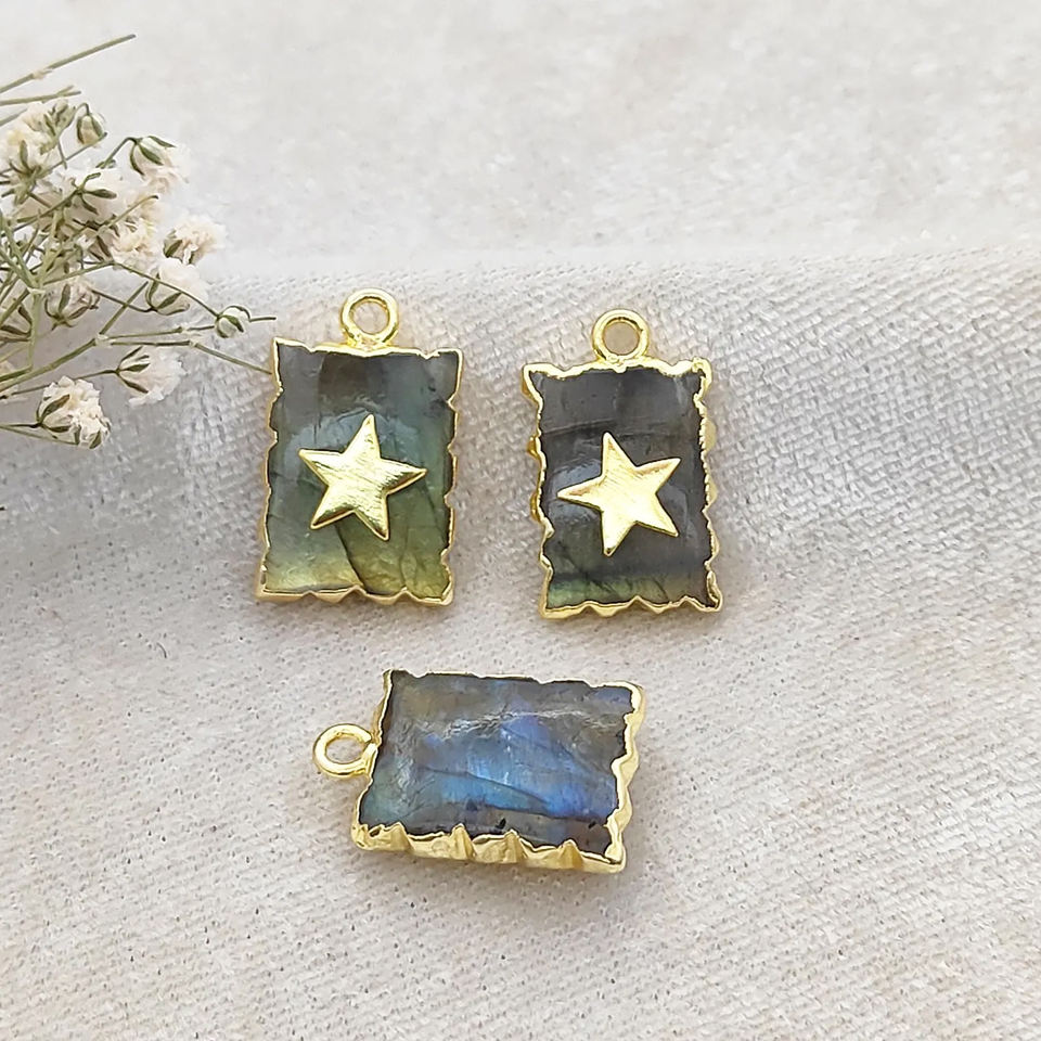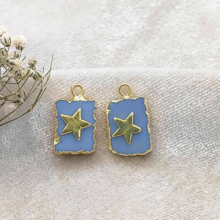 Colgante de ópalo azul rectangular de 16x12mm, abalorio galvanizado chapado en oro, suministros de joyería hechos a mano, venta al por mayor