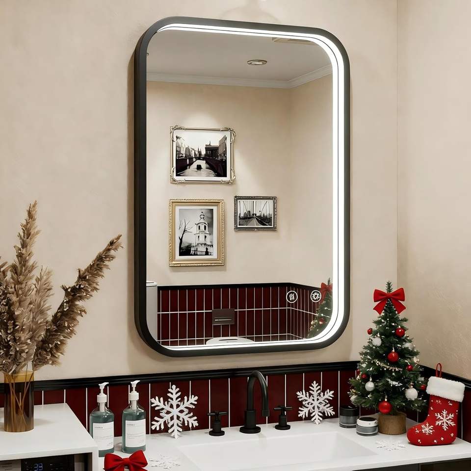 Espejo LED con Marco Negro de 16x24 Pulgadas con Luces, Ajustable 3000K/4500K/6000K, Espejo de Baño Iluminado para Montar en la Pared