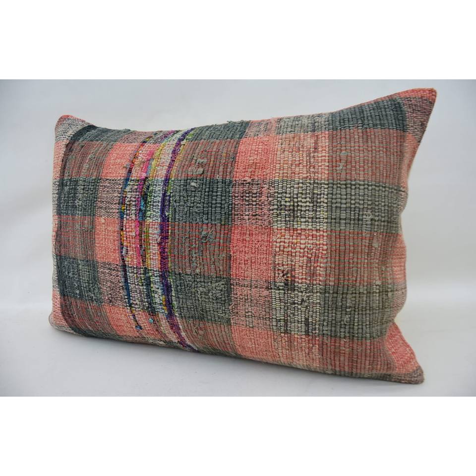 16x24 pulgadas Multicolor lana Kantha Patchwork tartán almohada acogedora y elegante acento almohada con patrón de tejido Vintage