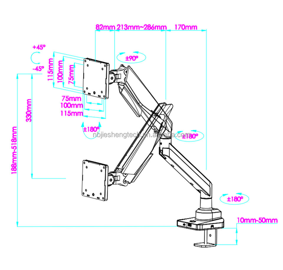 + 90 ° ~-25 °Ángulo de inclinación máximo