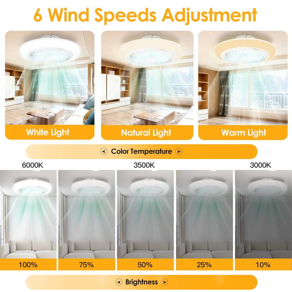 Ventilador de Techo LED de Perfil Bajo de 17.71 Pulgadas con Lámpara Colgante, Control Remoto de 6 Velocidades, APP, 3 Colores - Categoría de Producto: Ventiladores de Techo LED