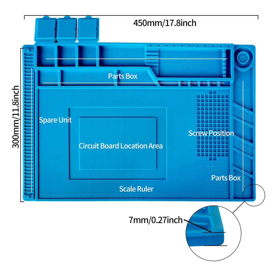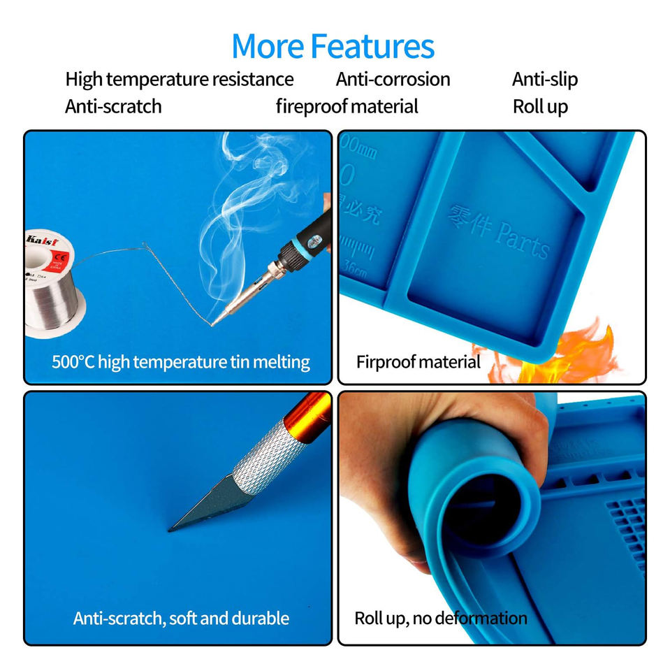 Alfombrilla de soldadura de silicona de 17,8x11,8 pulgadas, placa de almohadilla resistente al calor para BGA, banco de trabajo, reparación de portátiles y teléfonos móviles